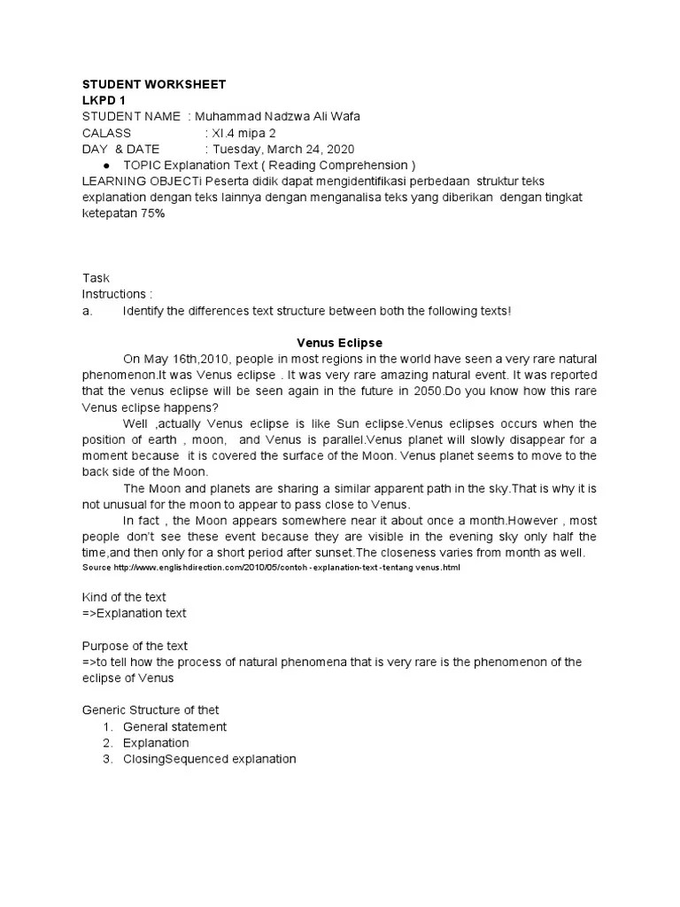 Contoh soal bahasa inggris (explanation text). Hampir semua contoh explanataion text itu bertujuan untuk menjelaskan kenapa atau bagaimana terjadinya sesuatu. Misal, di buku mata pelajaran biologi ada teks yang menjelaskan bagaimana metamorfosis. Indonesia kelas xi semester 2 dengan kunci jawaban untuk siswa sma/ma/smk/ma/sederajat dimulai dari soal pertama. Temukan contoh soal grammar lain di sini